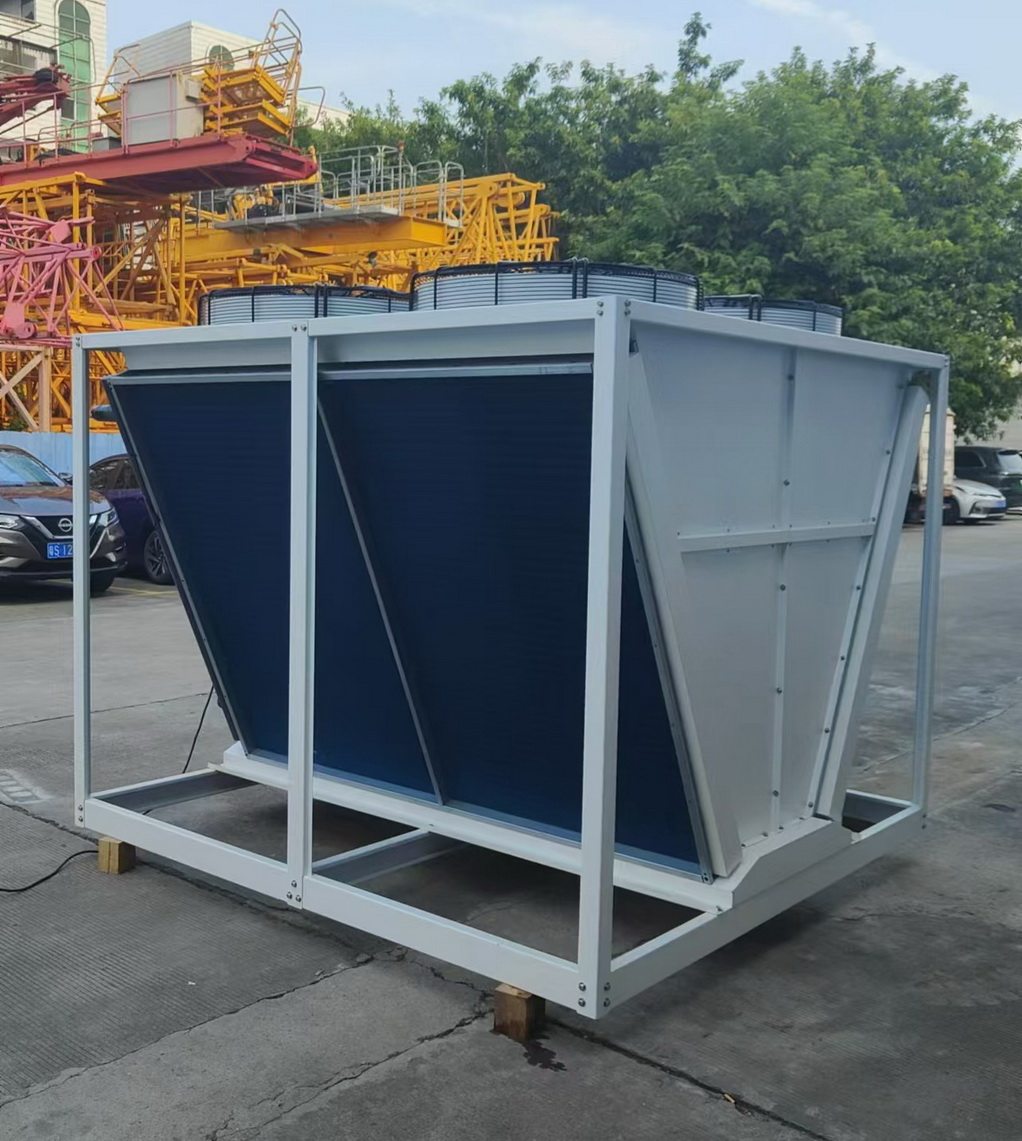 High-performance V-shaped dry coolers with Evaporative pre-cooling , spray system and dust  filter.